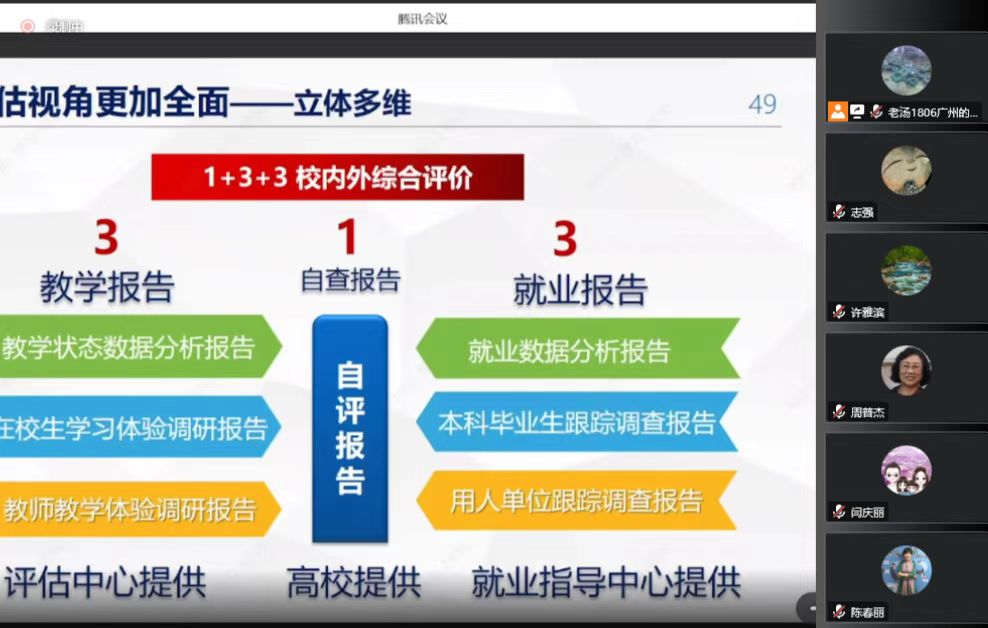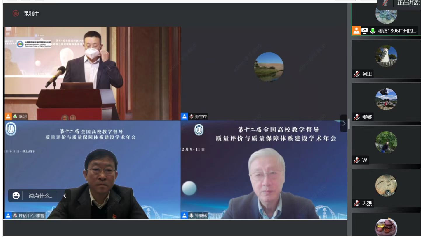 为加快建设新时代高校教育质量保障体系,促进高校全面提高人才自主培养质量,实现高校办学质量的内涵跨越式发展,由上海大学承办的第十二届全国高校教学督导、质量评价和质量保障体系建设学术年会于2022年12月9日-11日在上海市宝山区维也纳酒店顺利召开。本次大会由全国高等教育教学督导协作组主办,以线上线下相结合的方式进行。教育部有关部门的领导、上海大学领导和应邀为大会作报告的全国知名专家近20人,以及100余所高校的500余名代表参加了此次盛会。我校20多位校院两级教学督导及质量管理与评建办公室全体工作人员参与了本次会议的线上会议。