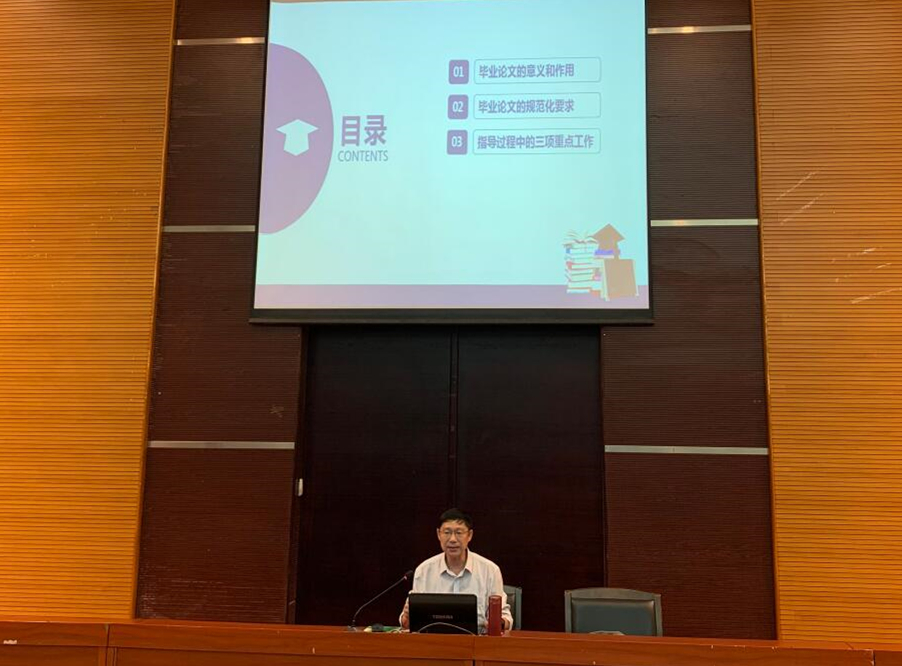 最后,沈教授强调,作为学生与指导教师共同完成的“作业”,在本科毕业论文指导过程中,第一,指导教师在思想上高度重视这项工作,要有认真负责的精神;第二,由于毕业论文环节多、时效强,因此要督促学生按时完成各个阶段所要求的任务;第三,为确保学生撰写毕业论文的质量,在选题、结构、格式上严格把关。
